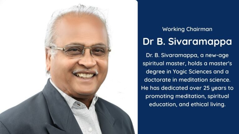 Dr B. Sivaramappa is a renowned spiritual master and international coach, holding a master's degree in yogic science and a doctorate in meditation and spiritual science. He has been in the field for over 25 years, promoting meditation, spiritual education, and spiritual and ethical values both nationally and internationally.